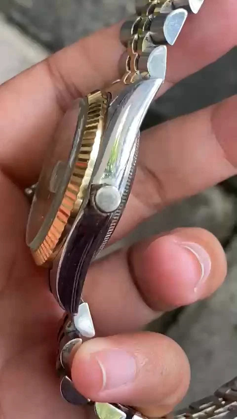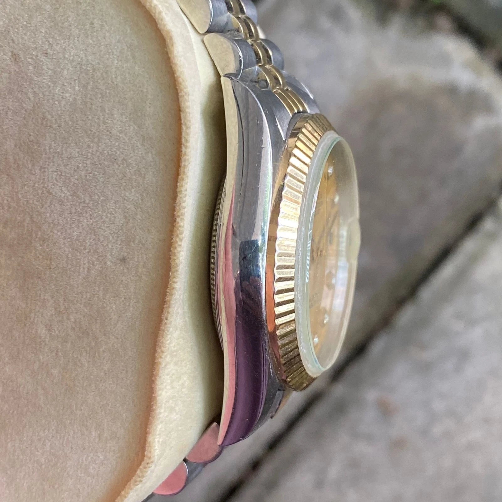 Rare Bulova Chronoprecision Date Diamond Index Gold Dial Two Tone Watch Vintage