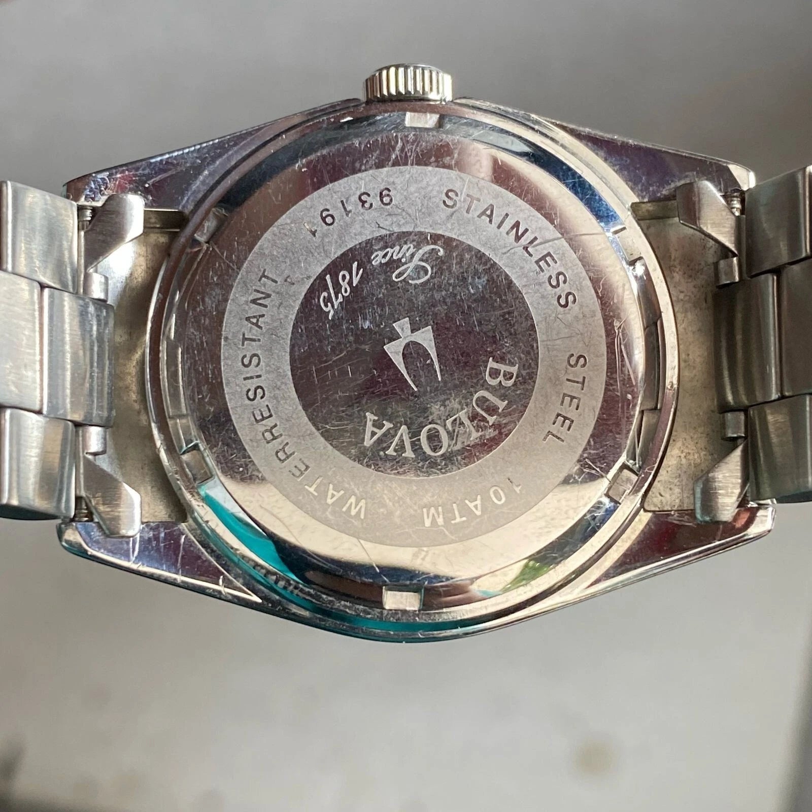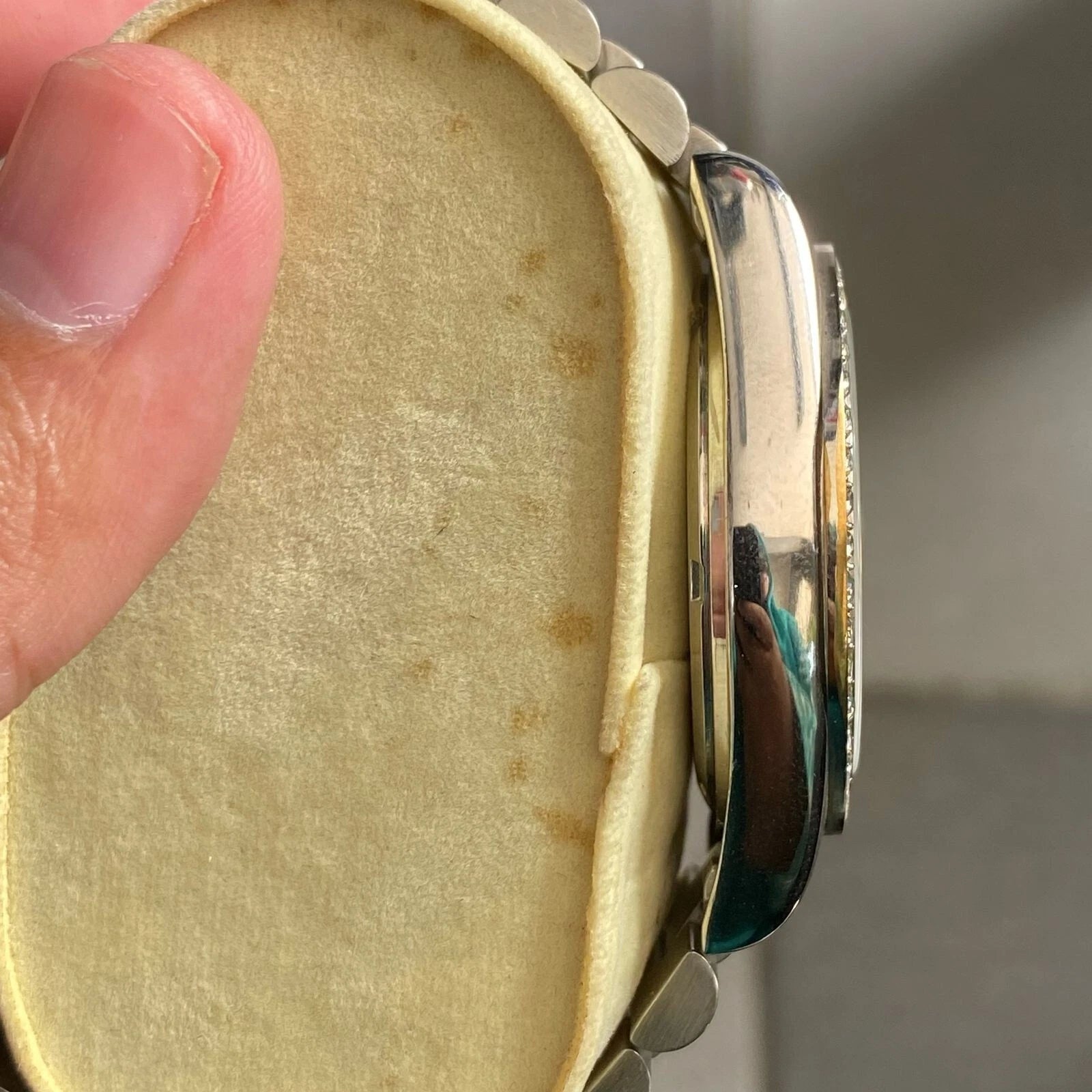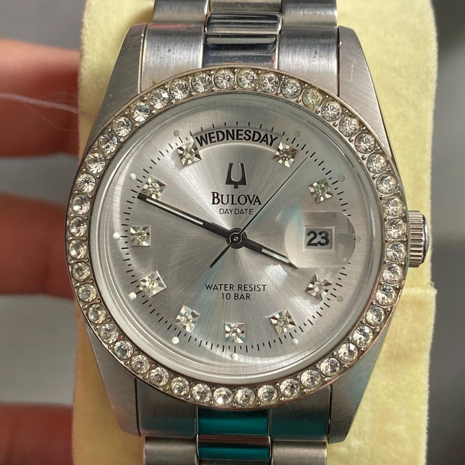 Rare Bulova President Day Date Quartz SIlver Index Diamond Bezel Vintage Watch