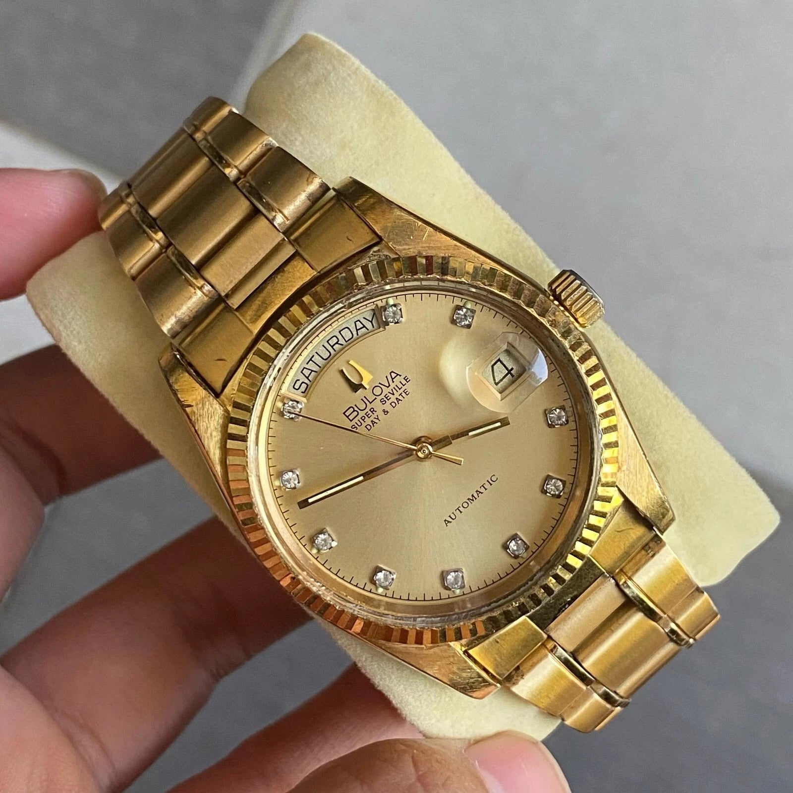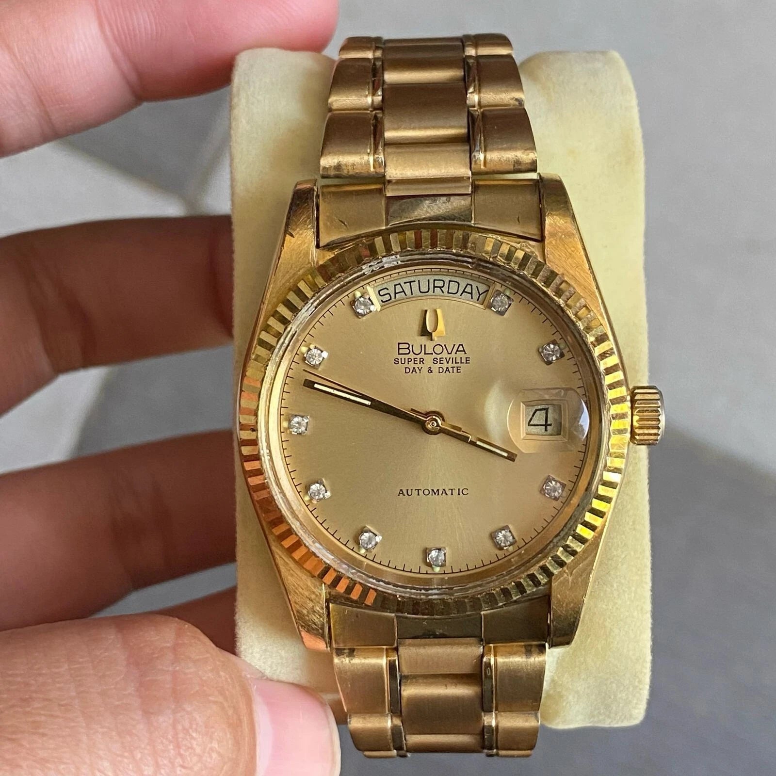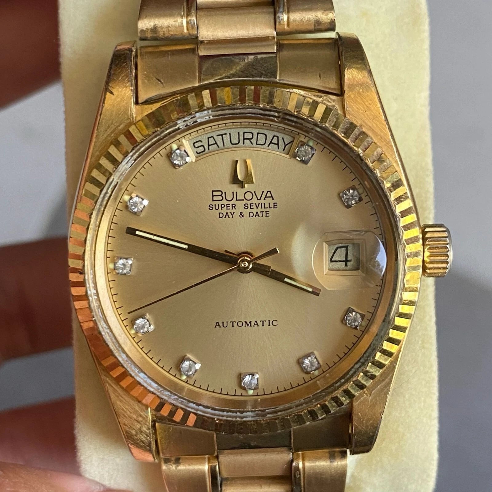 Rare Bulova President Super Seville Index Diamond Day Date Gold Automatic Watch