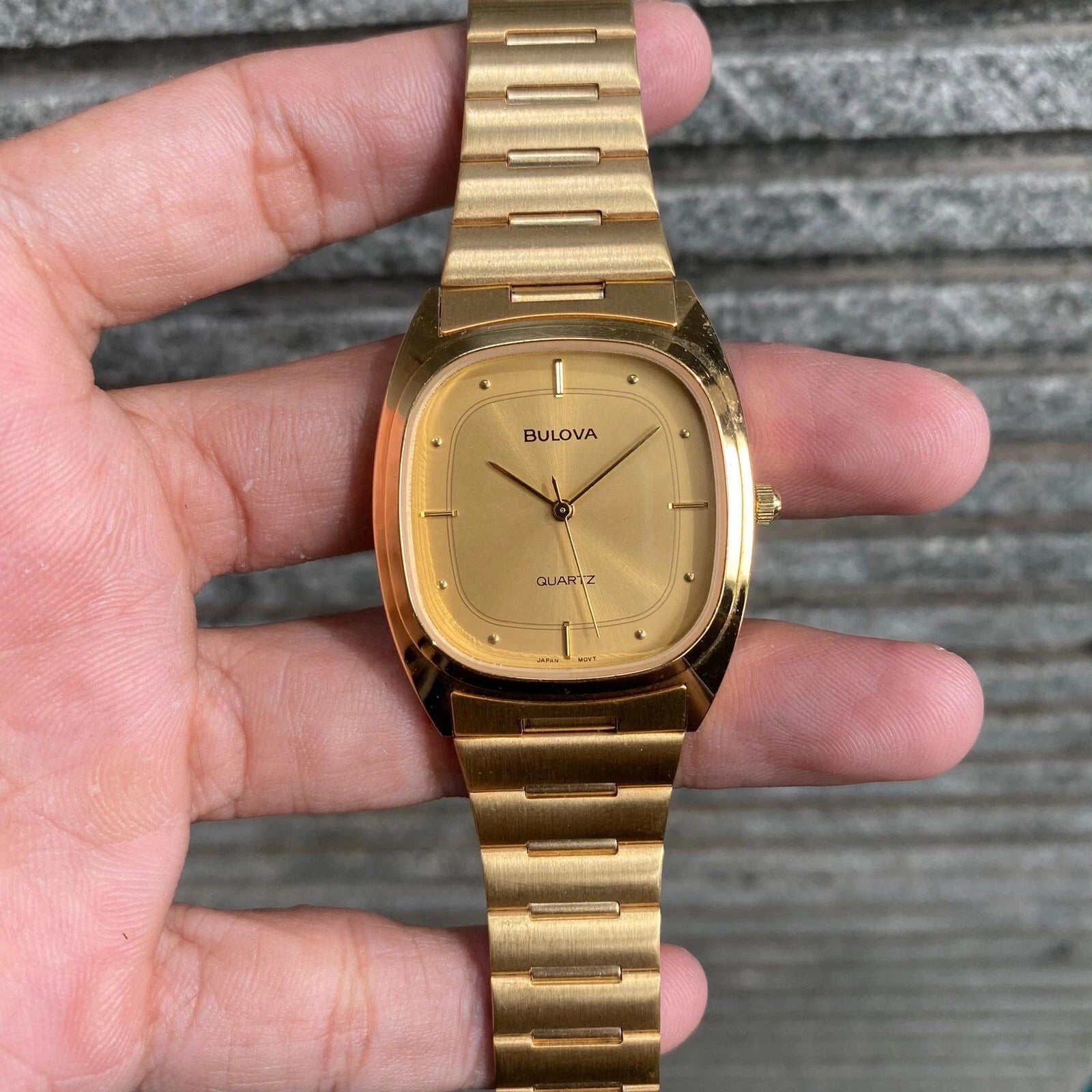Rare BULOVA Tank 96C143 Quartz Swiss Made Full Gold Men Watch Vintage