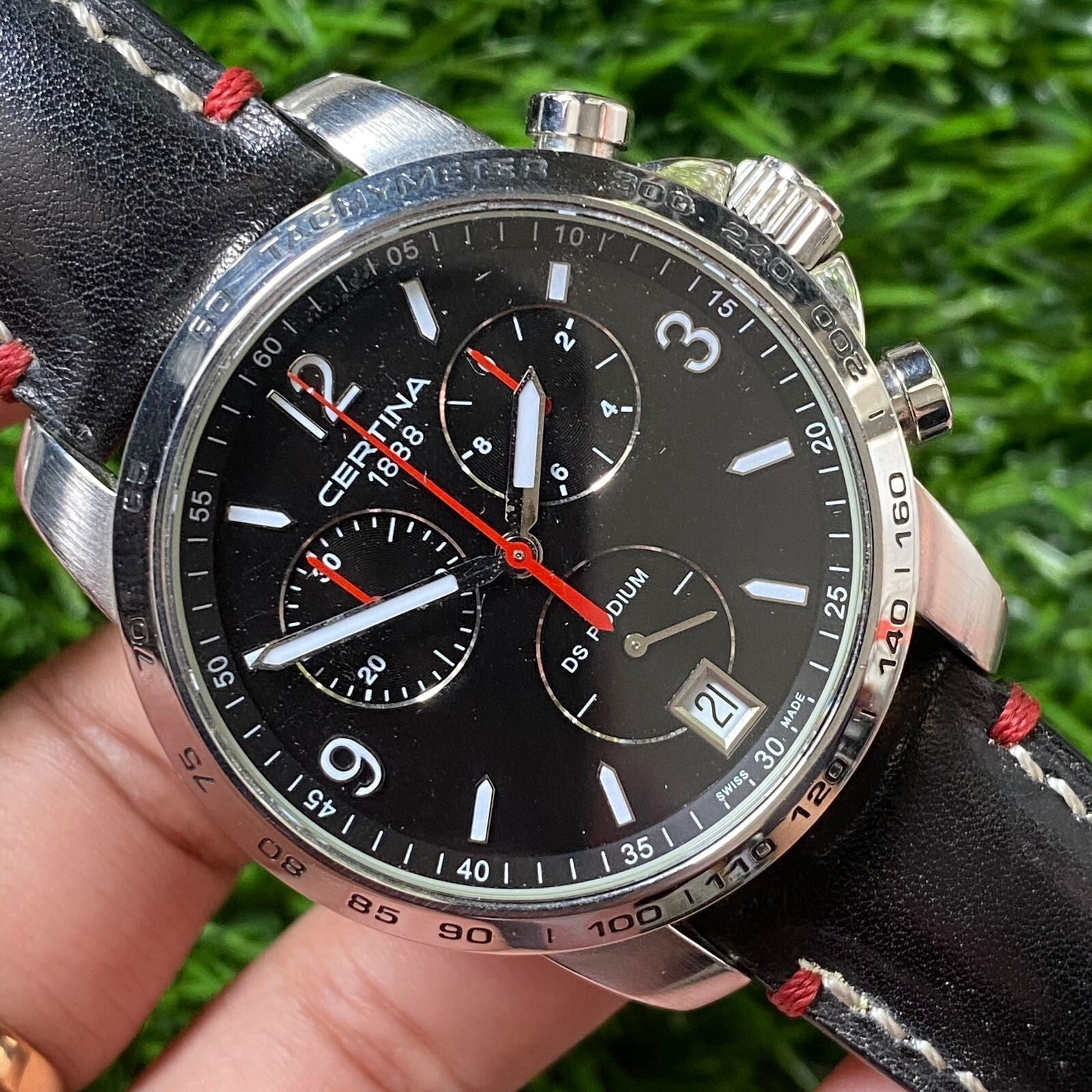 Rare Certina DS Podium Quartz Chronograph Black Dial Date Swiss Watch Men