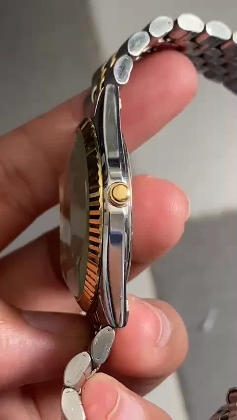 RARE Citizen Crystron Quartz Faceted Glass Day Date Two Tone Vintage Men Watch