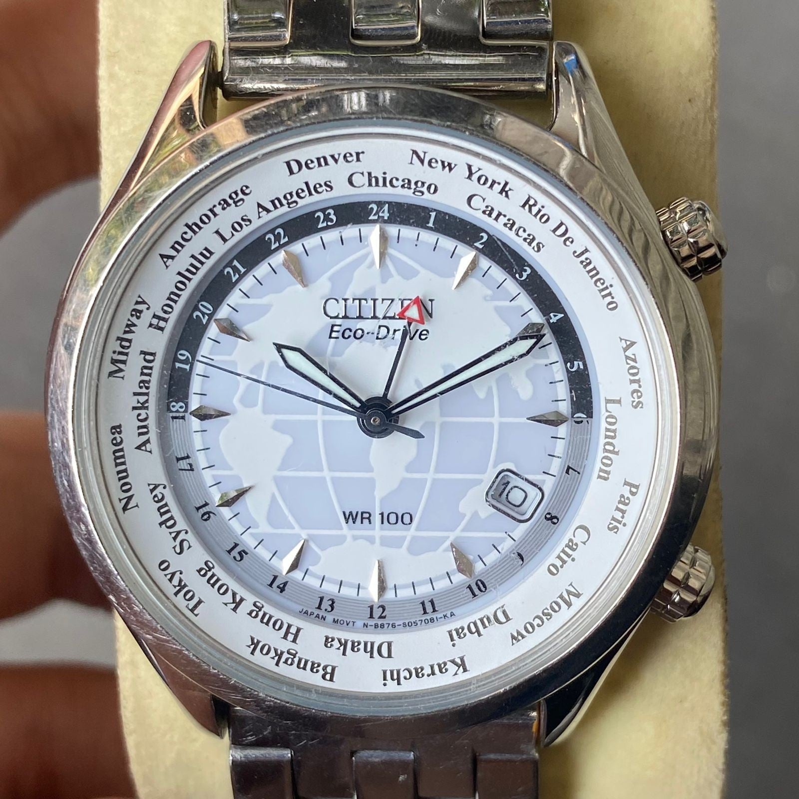 Rare Citizen WhiteHawk Eco Drive BJ9121-57A World Time Solar Vintage Men Watch