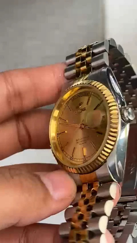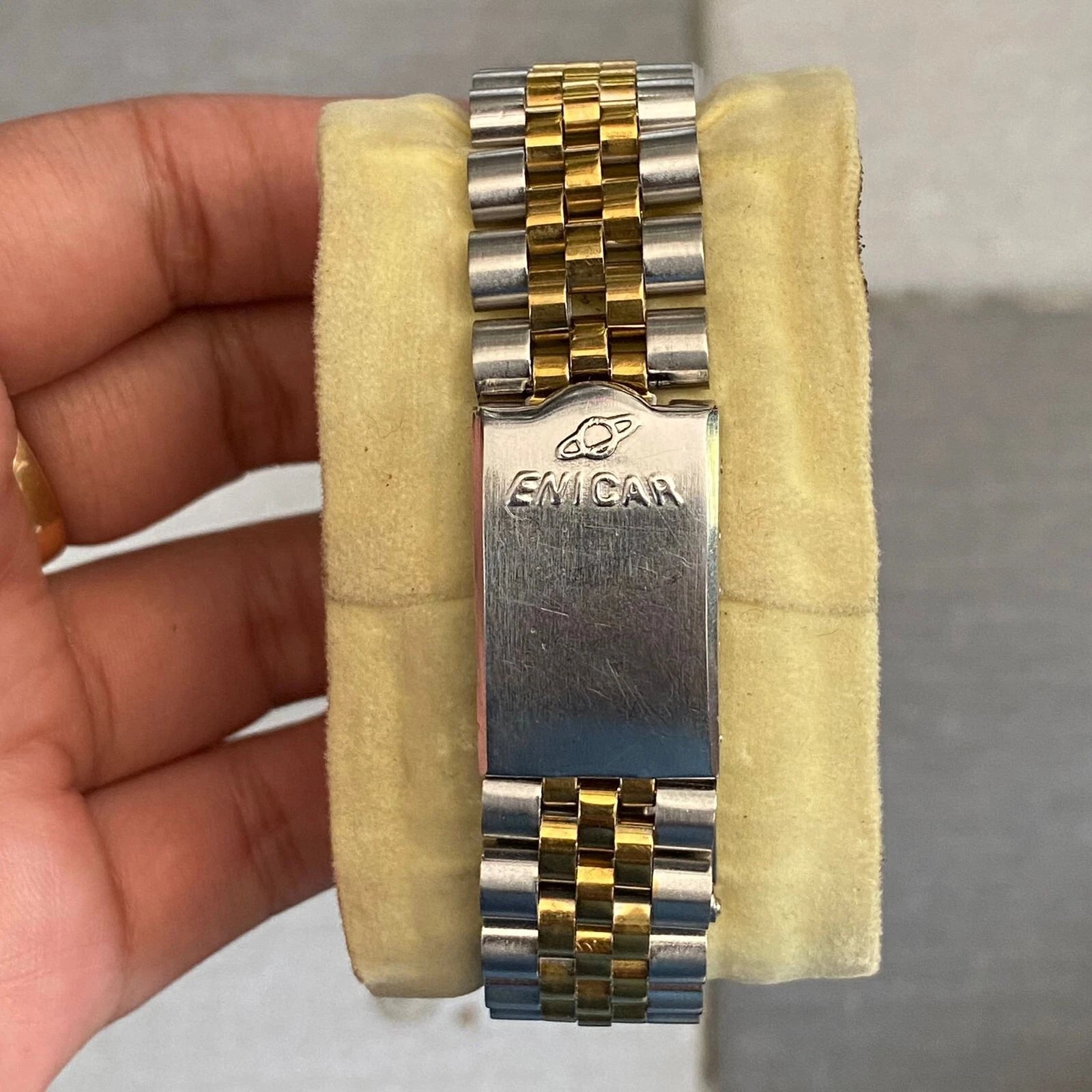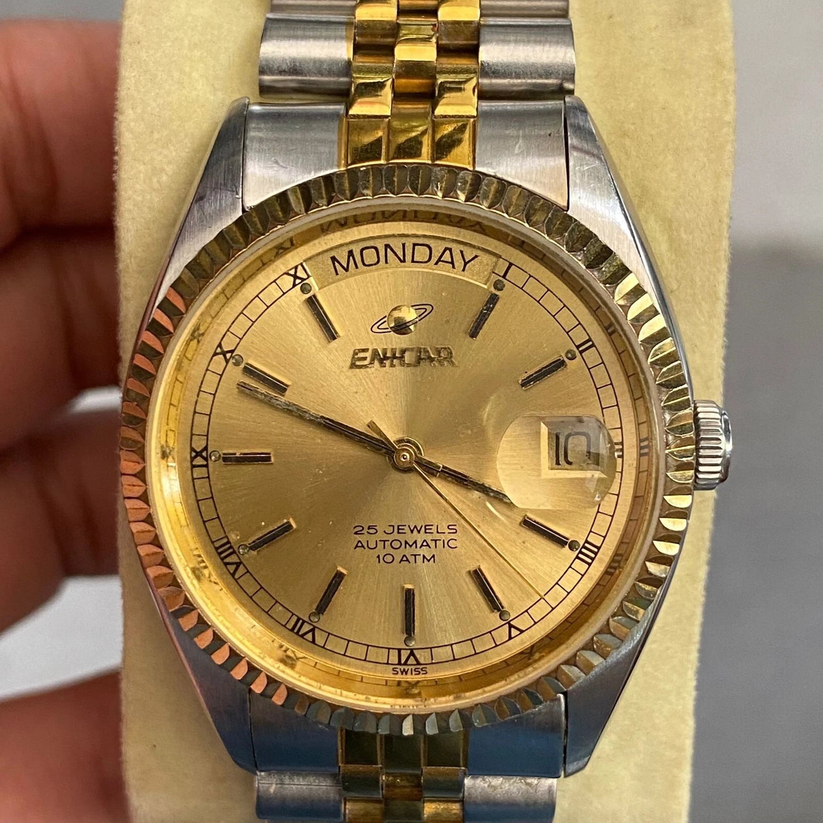 Rare Enicar President Automatic 25 jewes Gold Dial Two Tone Baton Vintage Watch