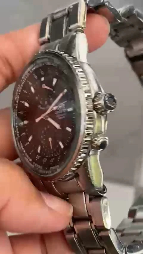 Rare Orient King Master Automatic Power Reserve Black Dial World Timer Watch Men