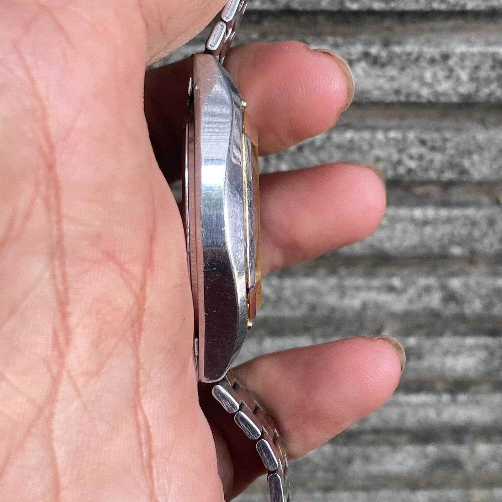 Rare Orient Quartz Oak Style Hexagon Day Date Two Vintage Men Watch