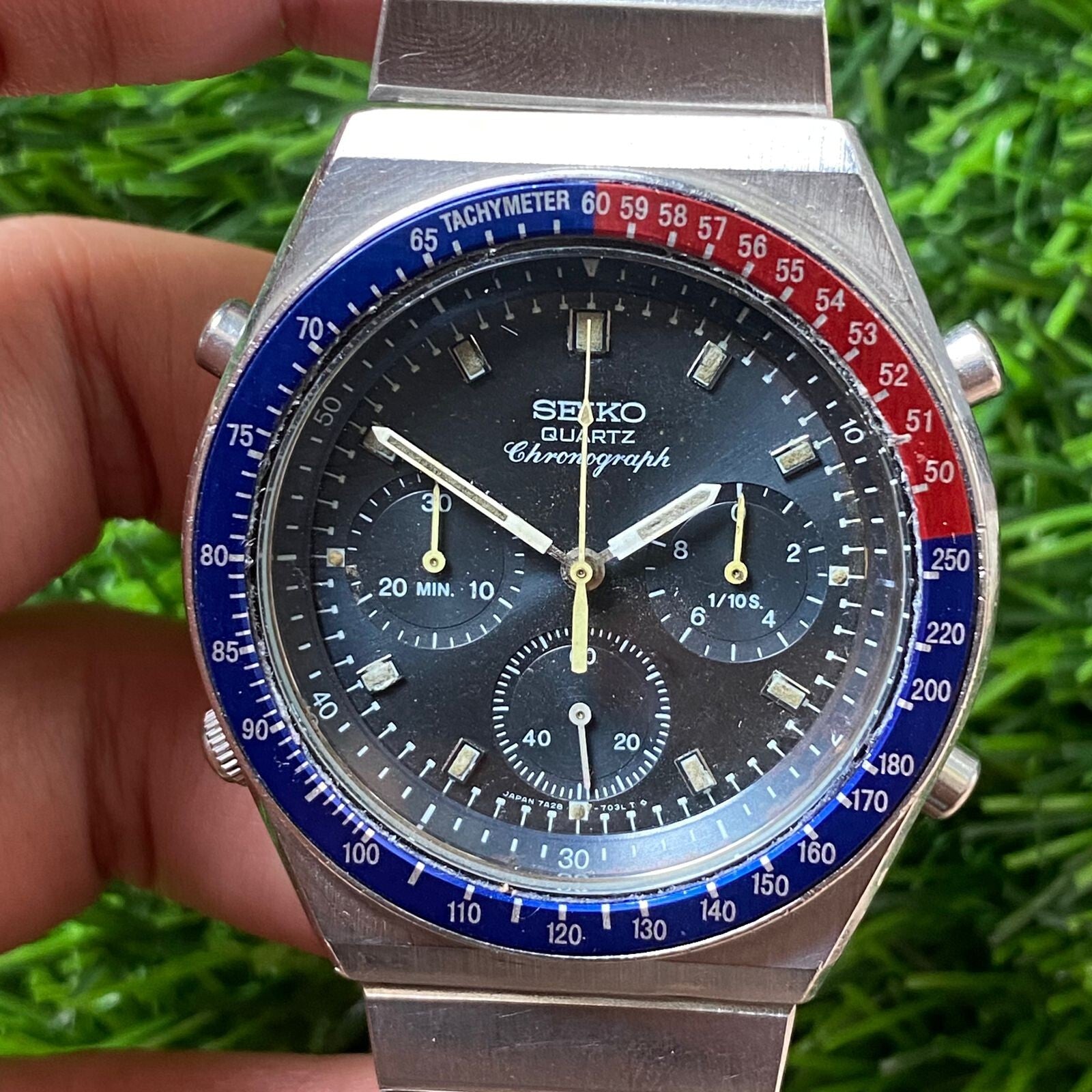 Rare Seiko Choronograph Quartz 7A28 Black Dial Pepsi Bezel Vintage Watch Men