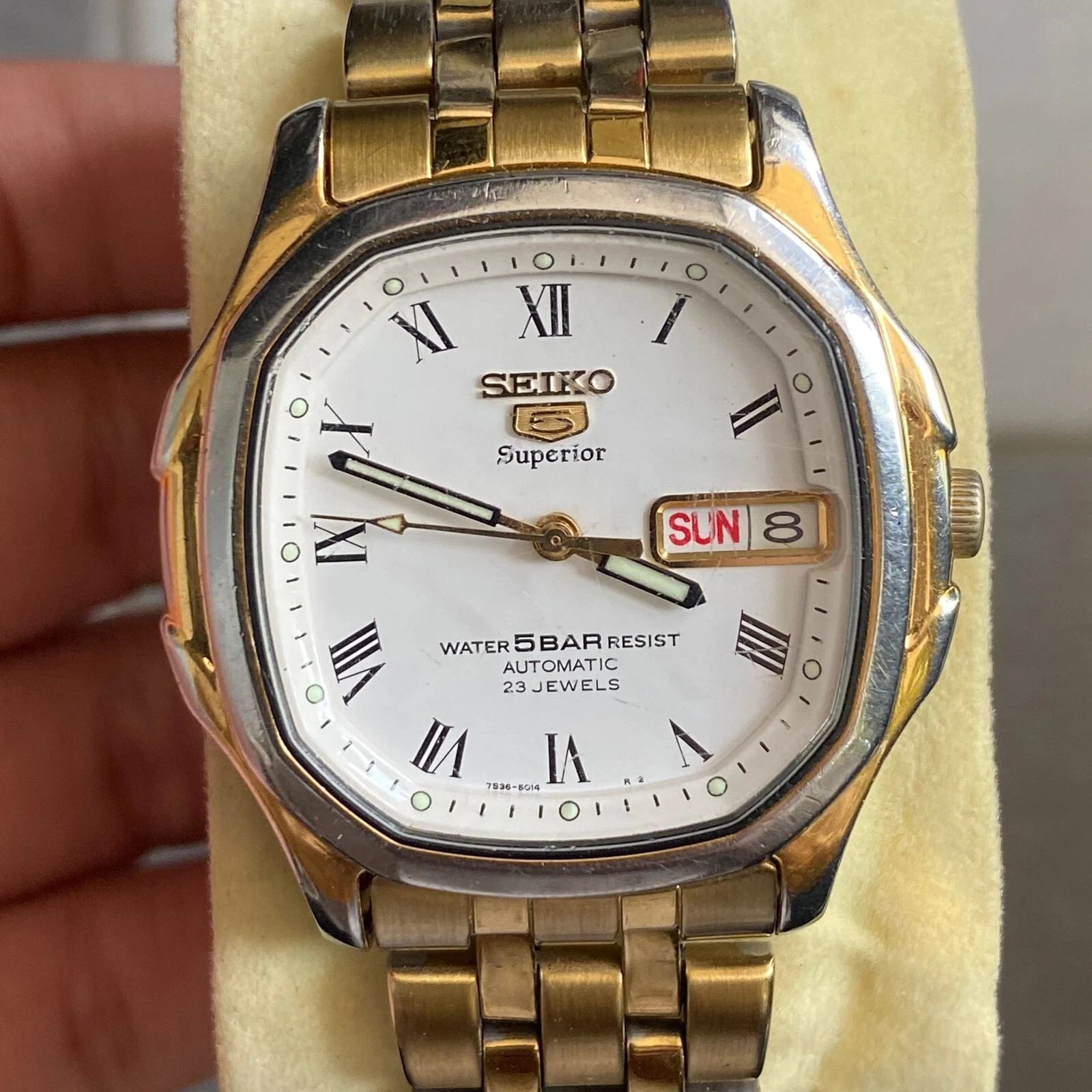 Rare Seiko Superior SKZ046 Roman Index White Dial Automatic Square Watch Men