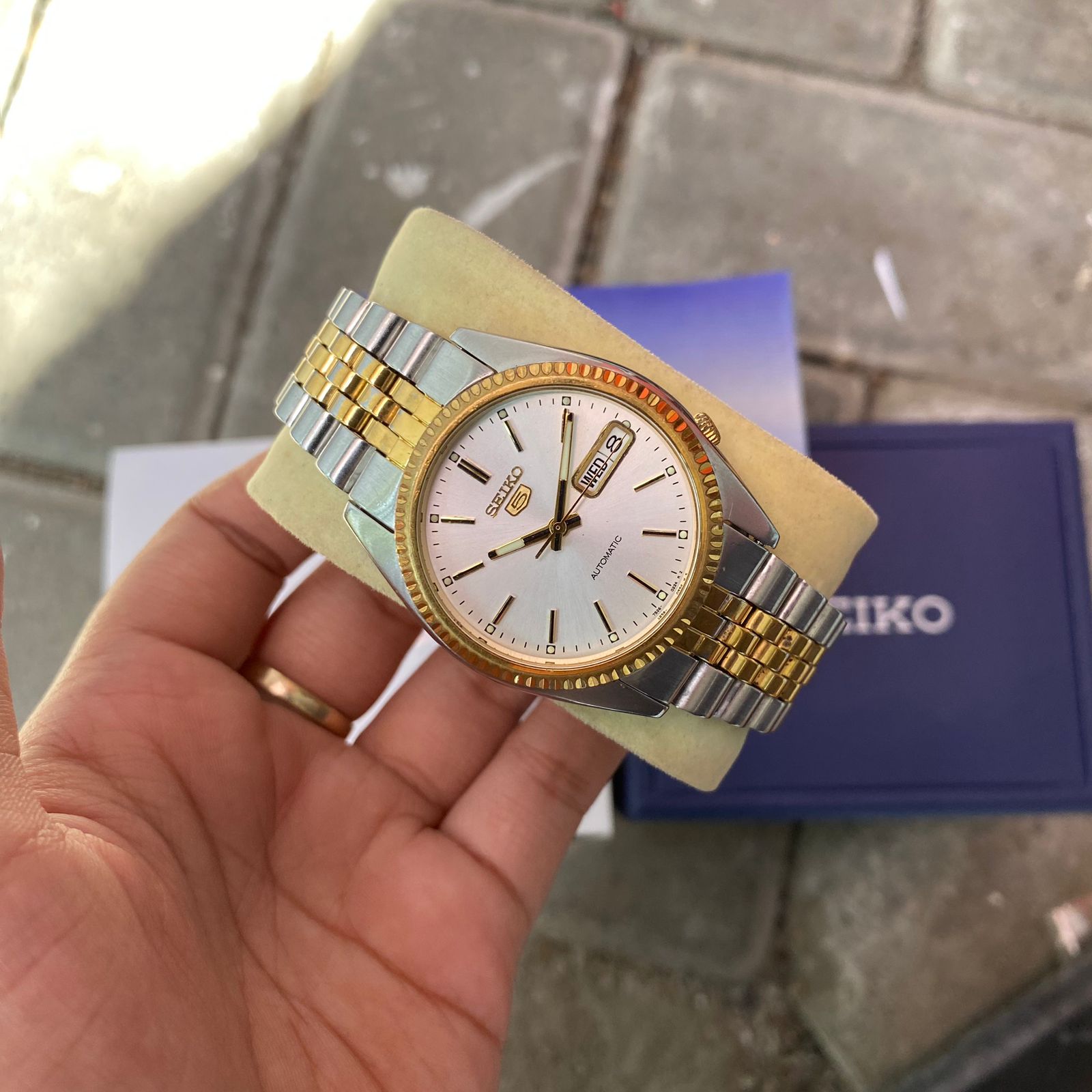 RARE Seiko SNXJ90 Automatic 7S26-3110White Dial Two Tone Vintage Watch